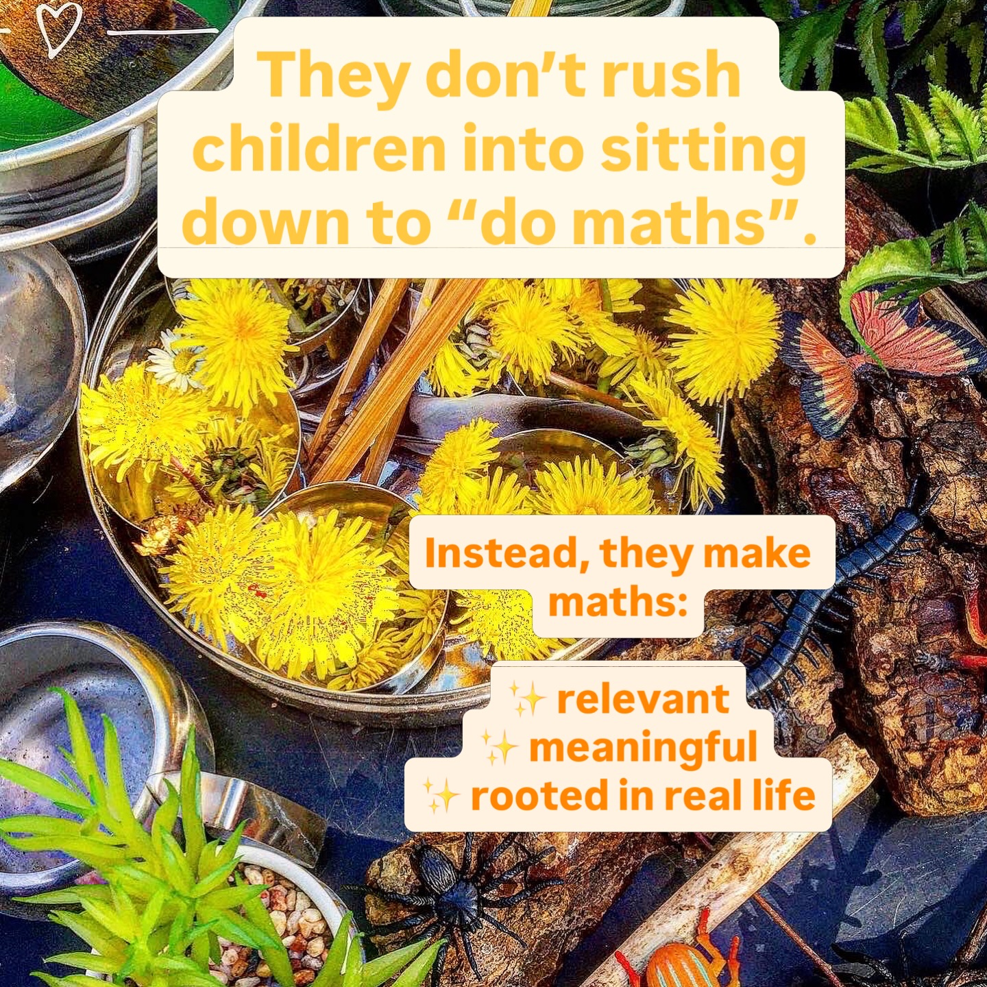 They don’t rush 3, 4 and 5 year olds into sitting down to “do maths”.